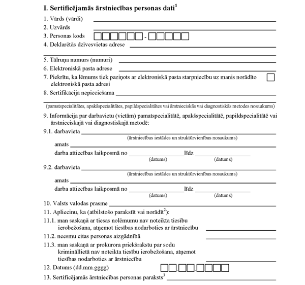 27. Ārstniecības persona, kas vēlas kārtot sertifikācijas eksāmenu (turpmāk – sertificējamā ārstniecības persona), iesniedz sertifikācijas institūcijā vai sertifikācijas komisijā iesniegumu, kuram pievieno šādus dokumentus: