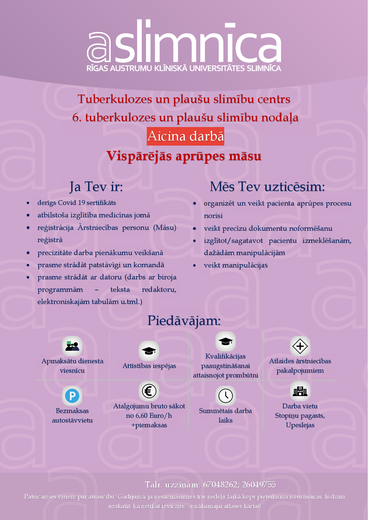 • Amats: Māsa 6. tuberkulozes un plaušu slimību nodaļā